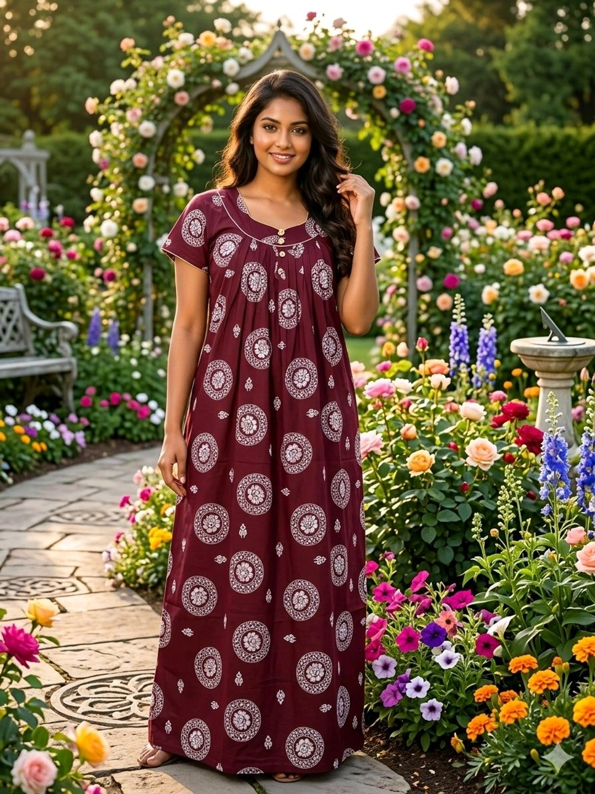 Experience unparalleled comfort and style with the Womens Nighties from New1bazaar, designed to provide a perfect blend of coziness and elegance. Made from premium-quality, 100% cotton fabric, this free-size nightwear is tailored to suit all body types, ensuring a relaxed fit that lets you unwind after a long day. Whether you're lounging at home, getting ready for bed, or enjoying a quiet morning, this nightie is the ultimate companion for your everyday comfort.